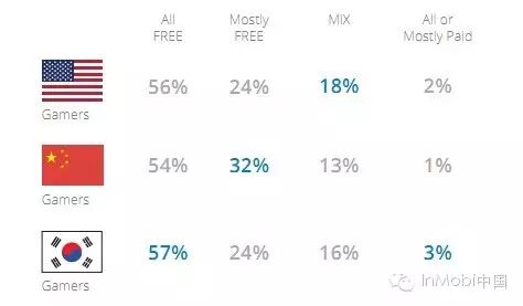三国免费游戏下载比例都为50%以上,然而,中国玩家选择“大多数为免费游戏”该比例为美国玩家的31%以上,而“全付费”和“免费付费混合”分类比例中,美国玩家为中国玩家的36%以上。