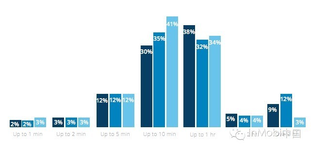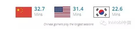 中国玩家每次游戏时间最长为32.7分钟,而韩国玩家每次游戏时间最短为22.6分钟。