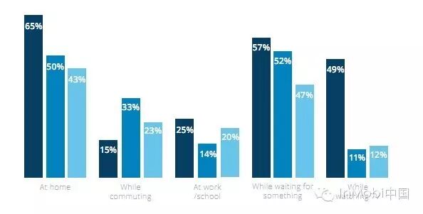 不同市场对于游戏玩法选择不一,而游戏场景也不相同。美中韩三国的玩家都倾向玩游戏打发时间,美国玩家更喜欢具有挑战性的游戏,并更愿意在家玩游戏,在看电视的时候玩游戏的玩家比例为中韩玩家比例的三倍以上。而中韩玩家更多的是在上下班途中玩游戏。