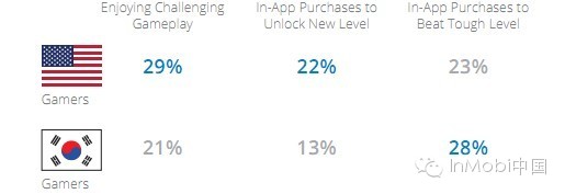 (图示:美国和韩国移动玩家应用内付费和购买动机)