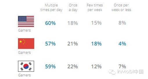 在三个国家中,游戏频率并没有太大差异,四分之三的玩家每天至少打开游戏一次。