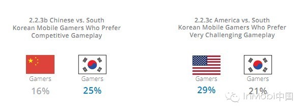 目前,中韩两国玩家更喜欢社交游戏,例如RPG/冒险游戏,该比例达43%,而美国人更喜欢具有挑战性的益智类游戏,该比例为45%。。开发者应该考虑不同市场的用户特点来设计盈利方案。另外美国玩家对于博彩类游戏的青睐度为中韩玩家比例的103%以上,益智解谜类游戏玩家比例为中国同类型玩家比例的93%以上。