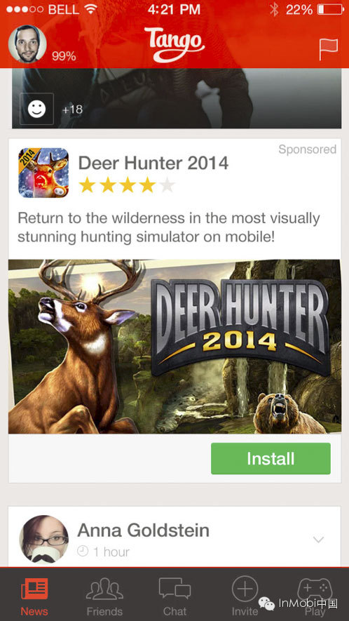 借助这样三大手段,InMobi终于解决了原生广告的规模化难题,这无疑是为全球上千万App开发者带来的好礼物。目前,该原生广告平台已经在Tango等全球领先App开发商进行了实施并获得了大量好评。该平台通过强有力的广告定制功能,充分适配诸如视觉呈现、互动元素和社交分享按钮等各种微小细节,从而帮助Tango实现其盈利目标而又很少干扰用户体验。